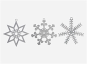 Froststjernerne - eller snefnug - er fremstillet i metal og derefter belagt med glimmer. De kan rigtig glitre, når de fanger lyset. Bemærk, at glimmer vil drysse. Mål: ø: 8cm