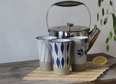 3 forskellige mønstertyper - vælg og mix helt som du vil nedenfor. Kruset fås som Blå Grafik, Blå Blomst eller Blå Striber. Det gråglaserede og hånddekorerede krus er super anvendeligt. Tekrus, kaffekrus, kakaokrus - eller hvad med at bruge krusene som flotte og lidt anderledes vandglas?